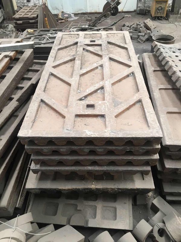 颚破机颚板通常用高锰钢的,为了增加抗磨性可用ZGMn13Cr2,也有增加增加微量元素进行微合金化处理(也称变质处理、改性处理)以提高抗磨性。小型颚板也有用“复合铸造”的,即齿面用高硬度的材料,而基体用高锰钢或碳钢。